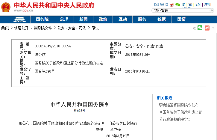 一、對(duì)18部行政法規(guī)的部分條款予以修改。